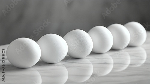 Fototapeta premium Fresh white eggs arranged neatly on a light surface for a culinary background...