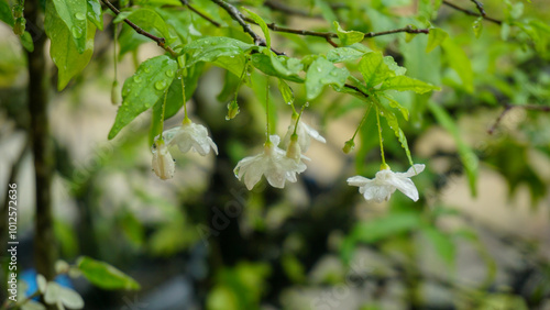 © Zulfatta Dwi Putra, Obraz premium Fresh White Flower Covered in Rain Droplets
