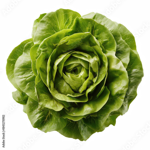 © Sathaporn, Fototapeta premium Fresh whole butterhead lettuce head top view isolated on transparent background.