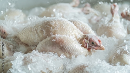 © sadad, Fototapeta premium Fresh whole chicken covered in ice