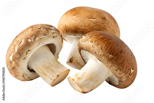 Fototapeta premium Fresh Whole Cremini Mushrooms Isolated on Transparent Background,...