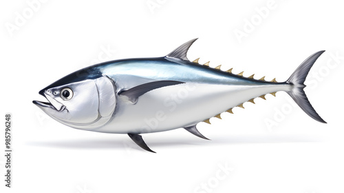 © Oksana_Latysheva, Obraz premium Fresh whole tuna fish with glossy silver skin isolated on white background