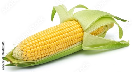 © Space Priest, Obraz premium Fresh yellow corn on the cob with green husk