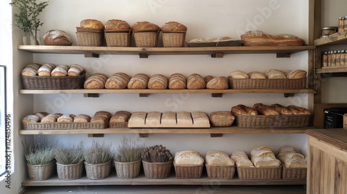Naklejka premium Freshly Baked Bread Loaves Display in Bakery