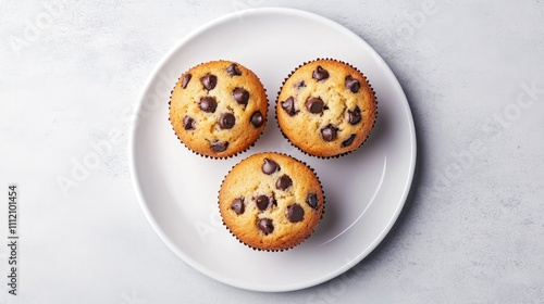 Obraz premium Freshly Baked Chocolate Chip Muffins on White Plate Displayed