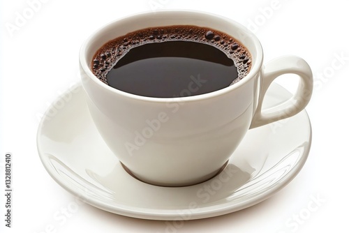 Fototapeta premium Freshly brewed black coffee served in a white cup on a saucer, inviting...