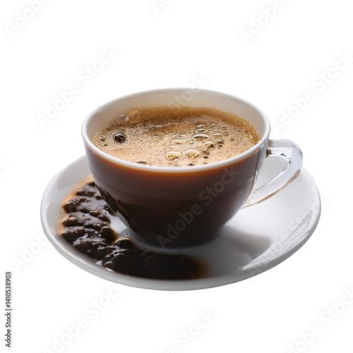 © MODIQUE, Obraz premium Freshly Brewed Coffee in a Cup with Saucer on a White Background on transparent background