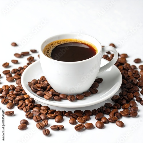 © Mukmin, Obraz premium Freshly brewed coffee in a white cup (1)