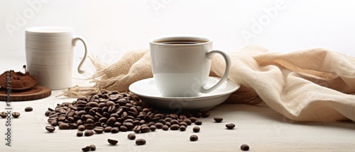 Fototapeta premium freshly brewed coffee with coffee beans and a cozy setting