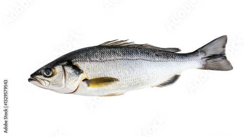 © Subin, Obraz premium Freshly caught fish on a white isolated background, showcasing its vibrant scales and features.