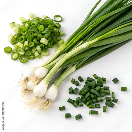 © kousar, Obraz premium Freshly chopped green onions with vibrant green color.