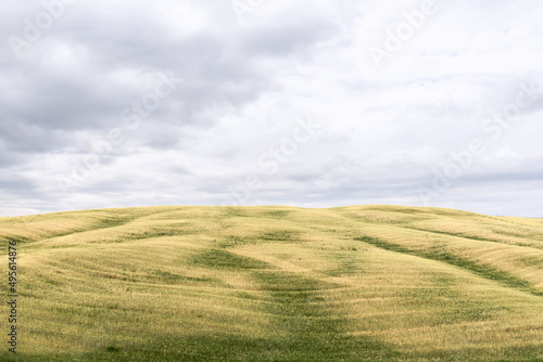 Obraz premium Freshly cut green and yellow fields in Val d'Orcia, Tuscany, Italy