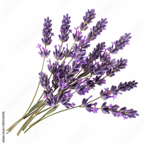 © nsit0108, Obraz premium Freshly cut lavender flowers forming a bouquet, isolated on a white background