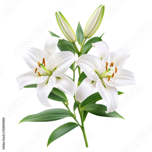 © JK_kyoto, Obraz premium Freshly cut white lilies with elegant design , Flower, isolated on transparent background