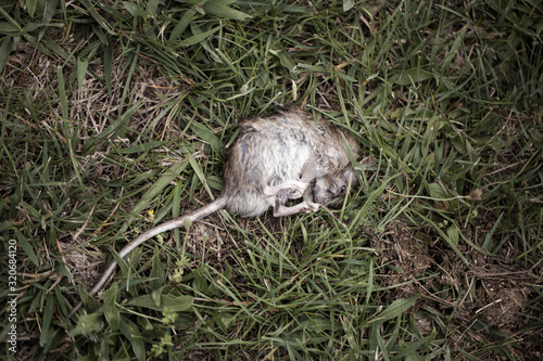 © Sarah, Fototapeta premium freshly dead rat lying on grass
