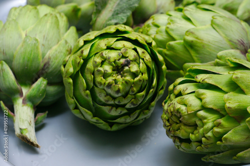 © sergodef, Obraz premium Freshly harvested fresh and natural artichokes