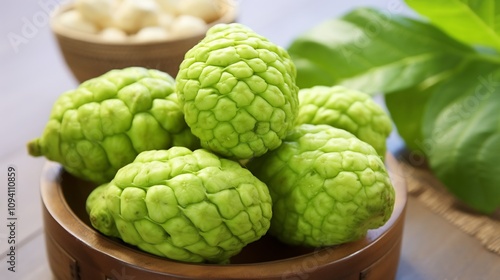 Fototapeta premium Freshly Harvested Noni Fruit with Bumpy Light Green Skin and Natural Texture