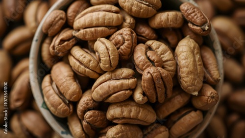 Naklejka premium Freshly Harvested Pecans in a Bowl - Perfect for Baking, Snacking, and...