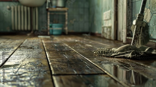 Fototapeta premium Freshly mopped floor, Nice clean but slippery Generative AI