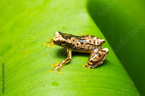 © Thorsten Spoerlein, Fototapeta premium Freshly morphed hourglass tree frog on a leaf