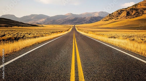Fototapeta premium Freshly Paved Asphalt Road Stretching Into Distant Scenic Landscape