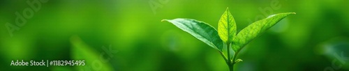 © Supharak wonginyoo, Fototapeta premium Freshly plucked tea leaves on a green tea plant stem, foliage, verdant, plant