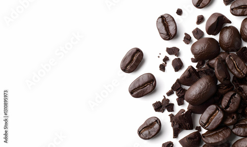 Fototapeta premium Freshly Roasted Coffee Beans and Ground Coffee on White Background