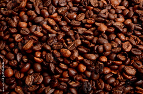 Obraz premium Freshly roasted coffee beans background, close-up