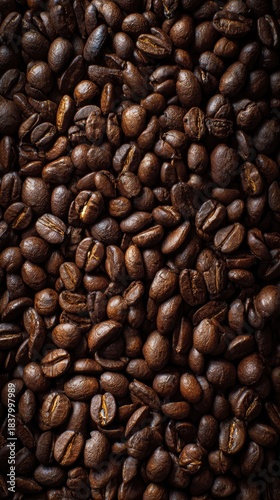 Obraz premium Freshly Roasted Coffee Beans on Dark Surface Background