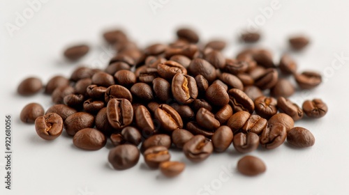 Fototapeta premium Freshly Roasted Coffee Beans Piled on a Light Surface