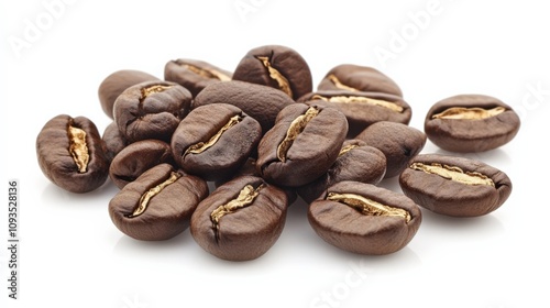 Fototapeta premium Freshly Roasted Coffee Beans Piled on White Background