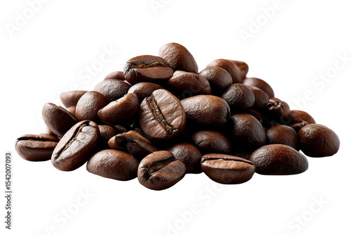 © PNG King, Naklejka premium Freshly roasted coffee beans piled up against a transparent background