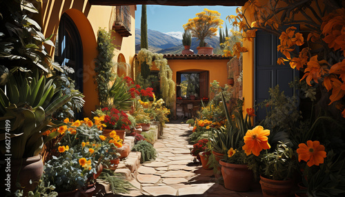 Naklejka premium Freshness and beauty in nature flower blossoms decorate the formal garden generated by AI