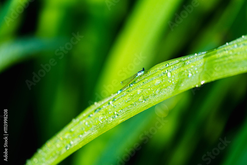 Naklejka premium Freshness of Nature: Morning dew drop sparkling on grass leaf