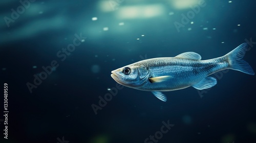 Fototapeta premium Freshwater Fish Swimming in Deep Blue Water with Light Streaks