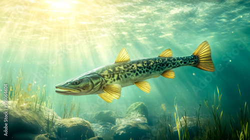 Fototapeta premium Freshwater fish swimming in sunlit lake water