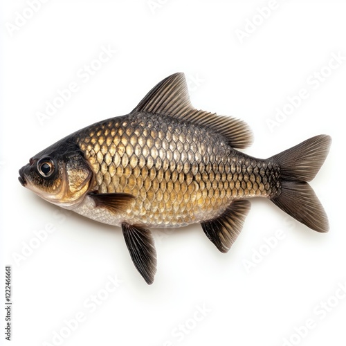 Fototapeta premium Freshwater Fish with Glimmering Scales on White Background