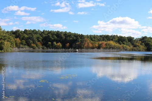 © Bob, Obraz premium freshwater pond blue sky clouds reflection