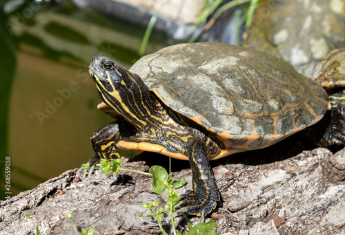 Fototapeta premium Freshwater turtle outside pond.