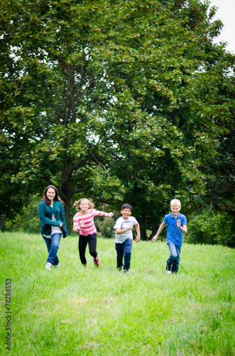 © Racle Fotodesign, Obraz premium freunde rennen gemeinsam durch einen park