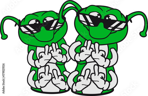 Fototapeta premium 2 freunde team paar duo boden loch cool sonnenbrille wichser hand handschuhe mittelfinger beleidigung fuck you off wurm aufrecht schnecke kriechen raupe schlange süß niedlich comic cartoon