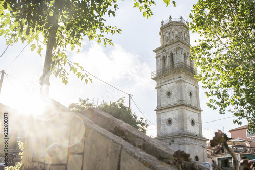 © FrenjaminBenklin, Fototapeta premium Freundlicher Kirchturm im Sommer im Dorf