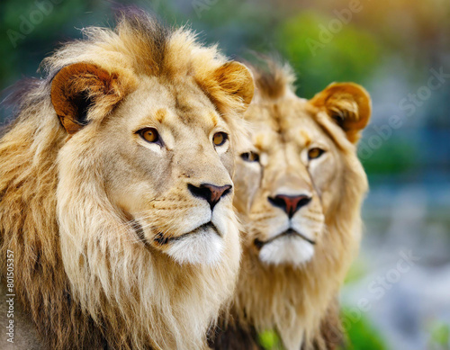 © bvbflo1, Obraz premium frican lion couple. Pair of wildlife pride predator animals.