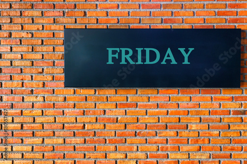Fototapeta premium Friday letters on a black background with brick wall