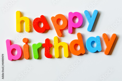 © Stephen, Naklejka premium Fridge magnets magnetic letters spelling out "happy birthday"