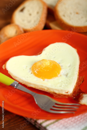 Fototapeta premium Fried Egg Sunny Side Up in Heart Shape