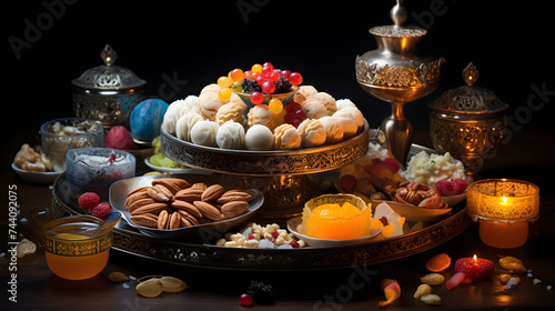 © Oleksandr, Naklejka premium fried fruit on a tray on a black background