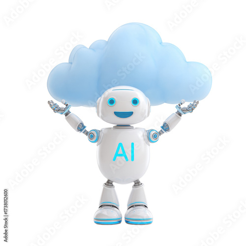 Fototapeta premium Friendly AI Robot Under a Cloud on Transparent Background