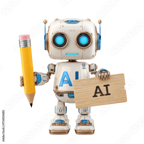 © Аrtranq, Fototapeta premium Friendly AI Robot with Pencil for Education and Tech Visualization