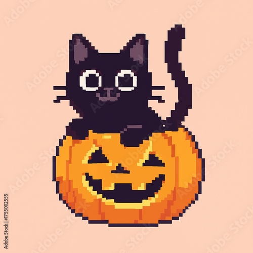 © Oleh, Obraz premium Friendly Black Cat With Jack Lantern
